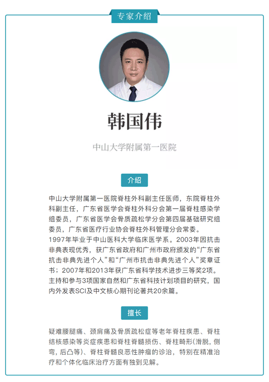 文字:中山大學附屬第一醫院脊柱外科副主任醫師韓國偉
