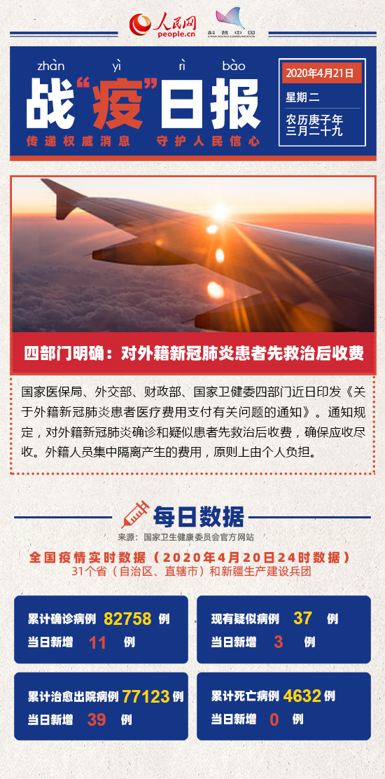 4月21日戰“疫”日報|四部門明確:對外籍新冠肺炎患者先救治后收費